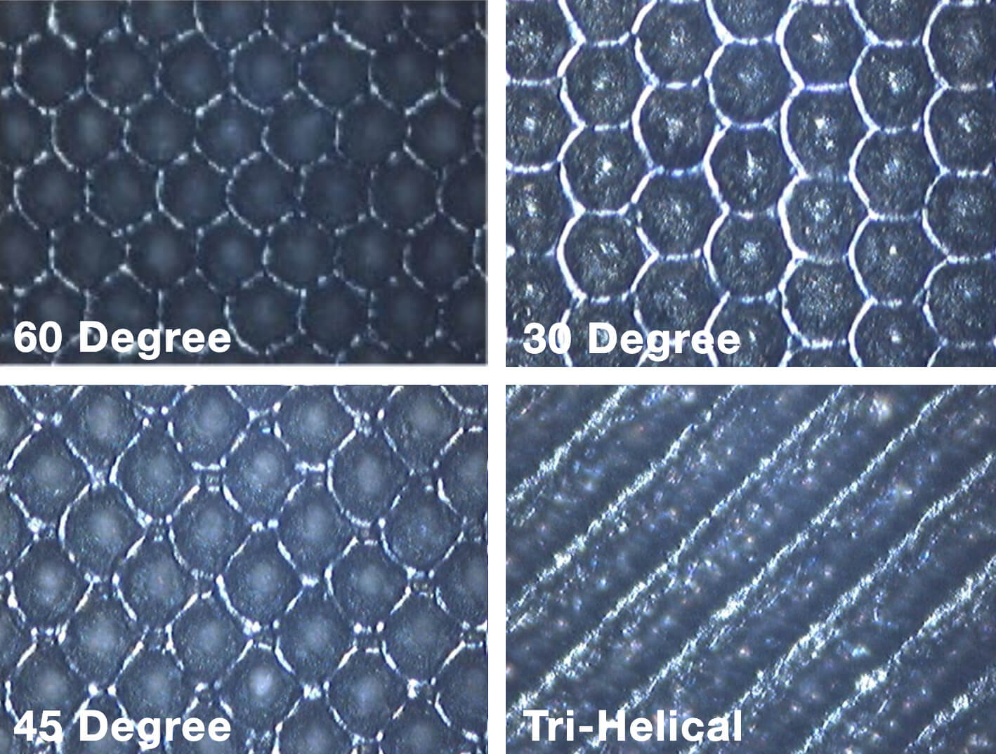 Our range includes all standard platforms - 30, 45, 60 degree and 45 Tri-Helical pattern, we also have 60 degree Tri-Helical, Ani-Plus (first generation elongation), Ani-Plus Il (second generation elongation), Ani-Flow, and Ani-Max structures available.
